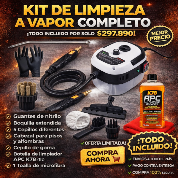 ¿Te pasó de limpiar todo tu auto y sentir que, en el fondo, sigue habiendo suciedad escondida? Con la Limpiadora Vapor Profesional +10 Accesorios para el Auto, e l vapor afloja grasa, y suciedad pesada sin químicos agresivos ni cepillados bruscos. Limpio, seguro y profesional.