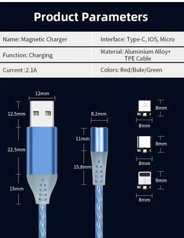Ahora podrás cargar rápidamente tu celular sin importar que marca utilices; con este magnífico cable de carga USB 3 en 1, podrás cargar tu dispositivo en poco tiempo gracias a su capacidad de carga rápida con cabezal giratorio. Podrás cargar tu celular SIN DAÑAR TU PIN DE CARGA . Puedes insertar la punta magnética en la interfaz de carga del teléfono puede evitar que el polvo se pegue.