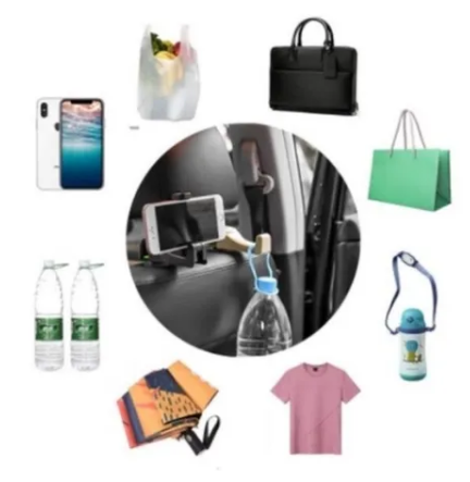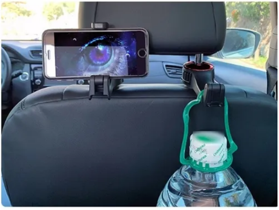 Soporte de celular, para asiento trasero, compatible con todas las marcas de celulares. Caño multiusos, para mantener el orden de su auto, puede colgar carteras, bolsos, botellas de agua, ropa, bolsas de compra.
